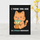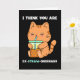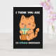 En bedårande orange kattunge dricker lite boba-pärl-te genom ett blått sugrör mot en svart bakgrund och har det söta meddelandet "I think you are ex-straw-ordinary"; en ordlek/pun för extraordinär. Texten inuti säger "And I'm not kitten!". Du kan anpassa meddelandet genom att lägga till, ändra eller ta bort det för att skriva in ditt eget meddelande för en anpassad hälsning. Berätta för någon som älskar söta kawaii-kattungar och boba-pärl-te exakt hur du känner på deras födelsedag eller på Alla hjärtans dag.