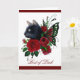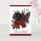 Röd ros svarta hälsningskort för kattunge med min vattenfärgskonst.