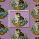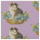 Söt, vintage kattunge i ett basket av blommor, med lilac bakgrund gör det möjligt att utforma söten! Underbar för vintage- eller kattälskare, för hemmabruk och för syningsprojekt!