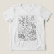 Min linje teckning om ett fläckat kattunge och ett snigel på en t-shirt kan lämnas som den är, eller färgad in med markörer.