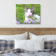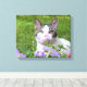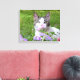 Söt Kattunge och han har tagit sig tid att känna lukten av blommorna. lila/rosa petunias i fodral