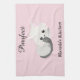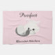 En underbar kökshandduk, den här artikeln har en rosa bakgrund med en underbar vit kattunge. "Purrfect" är skrivet överst med personanpassning på grund. Köp din idag! Bild skapat av: PretypeGrapfik-design (https://www.etsy.com/shop/Prettygrafikdesign)