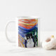 En lätt komisk hyllning till livets stressande. Det virrvarrande himlar och havet fångar hövdynan när man inser att man bara borttappadar illusioner eller hopp om kontroll. Inspirerad av Edvard Munch's, "The Skräm". Renderad i gouache.