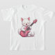 En grafisk bild av en söt vit kattunge som spelar en rosa gitarr Kattungens uttryck är lekfullt,