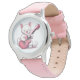 En grafisk bild av en söt vit kattunge som spelar en rosa gitarr Kattungens uttryck är lekfullt,