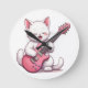 En grafisk bild av en söt vit kattunge som spelar en rosa gitarr Kattungens uttryck är lekfullt,