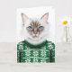 Denna vackra akvarellillustration föreställer en söt långhårig birma-katt i en ful jultröja.