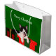 Den svartvita smokingkatten sitter överst av presenter och önskar att varje som en gåva för helgdag för jul för älskare för katt för Mewy jul (text kan lätt ändras eller tas bort) hänger lös