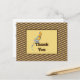 Detta katt-sittar-kort har en design med persikofärgade ränder mot en mörkbrun bakgrund. I mitten finns en solid fyrkant och en kattunge i färgblock som sitter på fyrkantens nedre kant. "Tack" står i mitten och kan anpassas för att passa dina behov. Baksidan har ytterligare text för att uttrycka uppskattning som snabbt och enkelt kan anpassas för att passa dina behov.