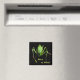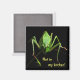 Den här magnet har en skrämmande grönt katydid. Katydider är medelstora till stora insektra. De är vanligtvis grönt, ibland med bruna markeringar, och kamoufleras för att blandas med de löv de matar på. Deras mycket långa antenner skiljer dem från gräshoppor. De verkar vara utomjordingar från rymden! Texten lyder: Inte i mitt kök! Den kan anpassas eller tas bort.