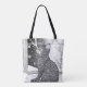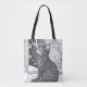 Kleine Katze sitzt am Fenster und beobachtet Schneeflocken unter leuchtendem Sternenhimmel. Diese Tragetasche ist ein bezauberndes Geschenk für Sie und alle Katzenfreunde.