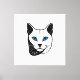 Katzen Kopf in Schwarz-Weiß Blaue Augen + Text Canvastryck