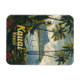 En serenbild och nostalgisk bild av Kauai, Hawaii, känd som "Garden Isle", som visar dess korptropiska landskap och andas kustvyer. Konstruktionen fångar Kauais dramatiska klippor, kaskadande vattenfall och pristina stränder, alla mot bakgrund av verdant regnskog och det mousserande Stilla havet. I en vintage stil frammanar konstverket öns skönhet och lugn atmosfär och uppmanar tittarna att uppleva sin idylliska charm och tidlösa allure.