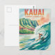 Kauai Surfing watercolor Vykort