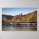 Landskapsfoto av Kaub, med slottet "Burg Gutenfels" och några vinodlingar ovan. Det är en liten stad vid Rhens flodstränder i Rheinland-Pfalz, Tyskland.