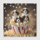 Bild i en stor popcorn-bucket är kavalierska spanjorer.