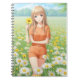 Kawaii Anime Girl in Daisy Garden Anteckningsbok