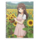 Kawaii Anime Girl in Sunflower Garden Anteckningsbok