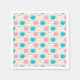 Upprepa mönster av blått, rosa och vitt kattformat kopp av te - eller kaffe - med kawaii ansikte.