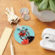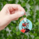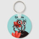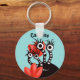 Cute monster personlig keychain med en svart tecknad med fyra öga på långa svarta och vita strimlade stammar som leende, gömt i abstrakt röda tulpaner. Den här söta, gigantiska designen har anpassade.