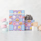 This pattern is special for its incredibly cute, whimsical fast food theme. It features a seamless repeating design of smiling kawaii characters, a burger, hot dogs, cheese, and donuts. The arrangement creates a central square frame with rounded corners, making it perfect for personalization or a fun sticker sheet. This illustration offers a cheerful, modern look for lunch bags or pop culture accessories.