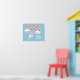 Toppen, raring som flyger under en regnbåge med lycklig moln. Anpassa med din egen text.