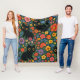 Kawaii Garden Art | Cute Black Cat Floral Pattern Fleecefilt