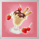 Vanilla glass scoops med chokladicing och shock rosa backgroud.