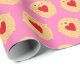 Lycklig kawaii Jammie Dodger kex med ett limmat rött hjärta på rosa bakgrund. Perfekt för fläkt av brittiska kex.