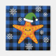 Kawaii Julafton Starfish on Blue Buffalo Mönster Magnet