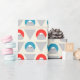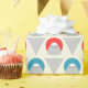 Ett upprepat mönster i lycklig kawaii Mt Fuji-bergen med röda och blå punkter och grått trianglar. Perfekt för fläkt av Japan och kawaiitecken.