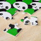 En söt pandabjörn, kawaii tecknad stil mönster. Originaldesign i svartvitt med gröntens bakgrund.