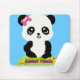Mycket gullig mousepad som presenterar den Kawaii pandaen. Med gulliga rosa pilbåge" i henne "hår" sitta på varmt gräs med lite blommor, på en ljus blå himmeldag.