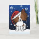 Överför Papillon julkort till alla hund älskare detta år! En gullig brunt- och vitkawaiiPapillon tecknad sitter på nytt stupad snö som ha på sig ett Santa lock, stundsnöflingor, driver besegrar försiktigt lite varstans henne. Insidan har snöflingor och läser också, "glad helg!", Du kan skräddarsy texten till något meddelande.