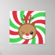 Cute och roligt Kawaii Red Nose Reindeer Canvas Wall Art.