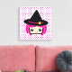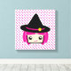 Cute och roligt Kawaii Rosa Hjärn Witch Wrapped Canvas. Underbara för barn och vuxnor.