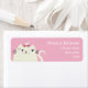 Söt, tjejaktig, tecknad, kawaii katt med rosa returadressetikett.