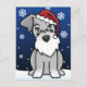 Skicka Schnauzer-julkort till alla dina djurvänliga vänner i år! En söt kawaii Schnauzer-tecknad sitter vid nyfallna snö med en julklapp, medan snöflingor driver försiktigt ner runt honom.