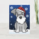 Skicka Schnauzer-julkort till alla dina djurvänliga vänner i år! En söt kawaii Schnauzer-tecknad sitter vid nyfallna snö med en julklapp, medan snöflingor driver försiktigt ner runt honom. Insidan har också snöflingor och lyder: "Glad helg!" Du kan anpassa texten till valfritt meddelande.