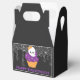 Söt kawaii spök Halloween cupcake med svart droppande glitterbakgrund