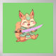 This adorable kawaii squirrel samurai leaps mid-air, showcasing its fluffy tail and mint green armor. As a brave warrior wielding a glowing sword, this fluffy warrior blends traditional Japanese samurai spirit with a playful, whimsical cartoon style.