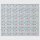 This pattern is special for its extremely cute, kawaii-style food characters. It features a seamless repeating design of smiling onigiri (sushi), mochi, and hearts set on a light blue grid background. The central focus is the bold, pink word "LOVE". This cheerful, modern illustration is perfect for personalized gifts, apparel, or children's products.
