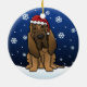 Cute Bloodhound jul Ornament, dragen i kawaii tecknad! Den här hederliga hund aveln bär en röd julhatt och snöflingor faller runt honom. Absolut älskling, perfekt för hund älskare Julafton träd!
