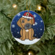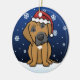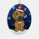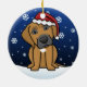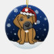 Gullig Rhodesian Ridgeback julprydnad som dras i kawaiitecknad! Denna förtjusande hund aveln ha på sig en röd Santa hatt, och snöflingor faller lite varstans honom. Absolut bedårande, perfekt för hund älskare julaftonträd!