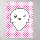 Cute och roligt Kawaii Winking Ghost Poster Skriv ut. Underbara för barn och vuxnor.