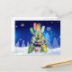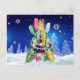 Roligten kajade julvykort med festliga kajaker och paddor som smög upp, dekorerade och förpackade i garland mot en blå snöstjärnorfylld natt himmel under julsäsongen. Alla höger reserverade © katz_d_zynes