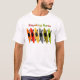 Kayaking tonar sjuksköterskan T-tröja och gåvor, ljust färgad kajaker i en ro i jordnäraa färger eller röda, orangar och grönt. "Kayaking sjuksköterska".