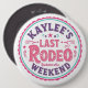 Sätt fart på en vild fest! Denna färgglada, runda design stolt proklamerar "Kaylees Sista Rodeo Sängvätstävlor". Perfekt för bruden-till-blivande och hennes cowgirlgäng att bära under en minnesvärd sängvätstävla.