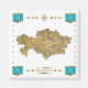 Denna formgivning omfattar ett Kazakstan karta i ett gräns som omfattar flagga. Utformningen fungerar bäst på kvadratiska magneter. Du kan lägga till en egen text/grafik med funktionen Anpassa den!. © 2010 FlagAndMap. Karta härlett från bilder: http://www.lib.utexas.edu/maps/