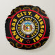 Rund, svart front röd bakåt med röd cirkel, guld och vit koncentrisk cirkel och med "KANSAS CITY, MISSOURI CENTER OF THE UNIVERSE" med Missouri State Seal i mitten. Det här är en shout till Kansas City, Missouri, staden champions.